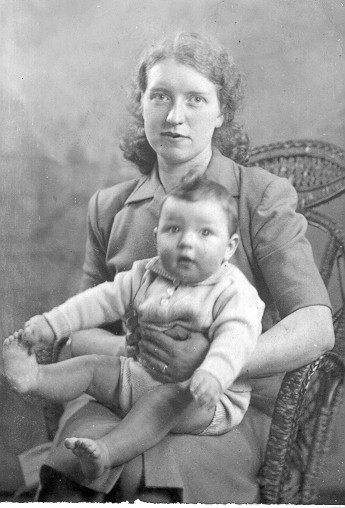 This is Ann Whatling with Ken Whatling about 1948 outside 139 Paterson Street Birkenhead. The dog is ’Nigger’- Harry Denmark’s dog.